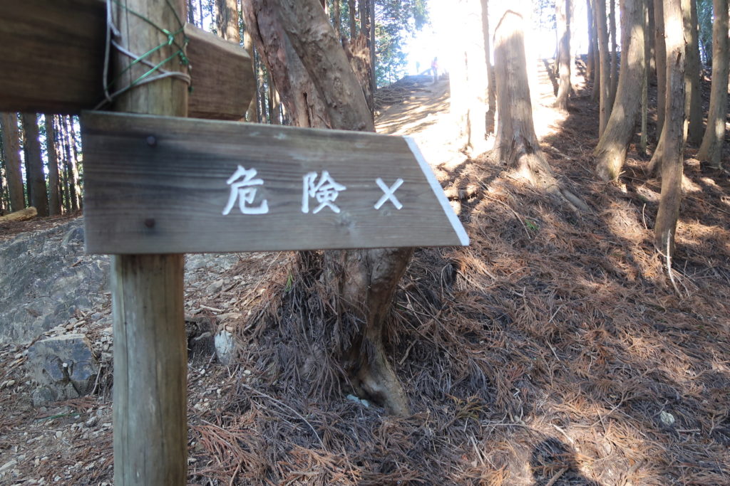 「五輪山」のすぐ先の案内板に「危険」と書かれています。正丸駅からの直登ルートの出口のようです。本当は、帰路にこちらを通る予定だったのですが、「正丸峠」を経由するルートに変更しました。