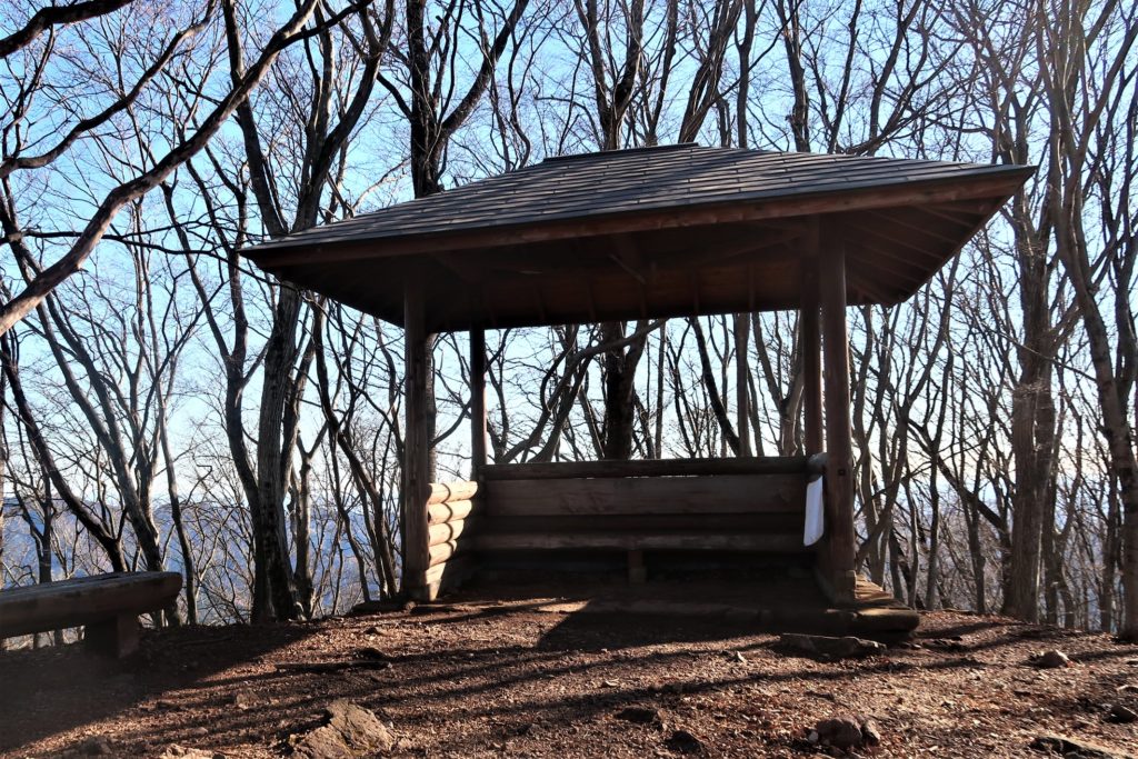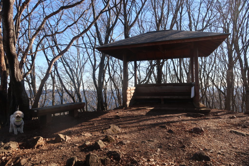 山頂には、東屋がありベンチも用意されています。広く開けたスペースがあり、少し木々はありますが、360度の眺望が楽しめます。
