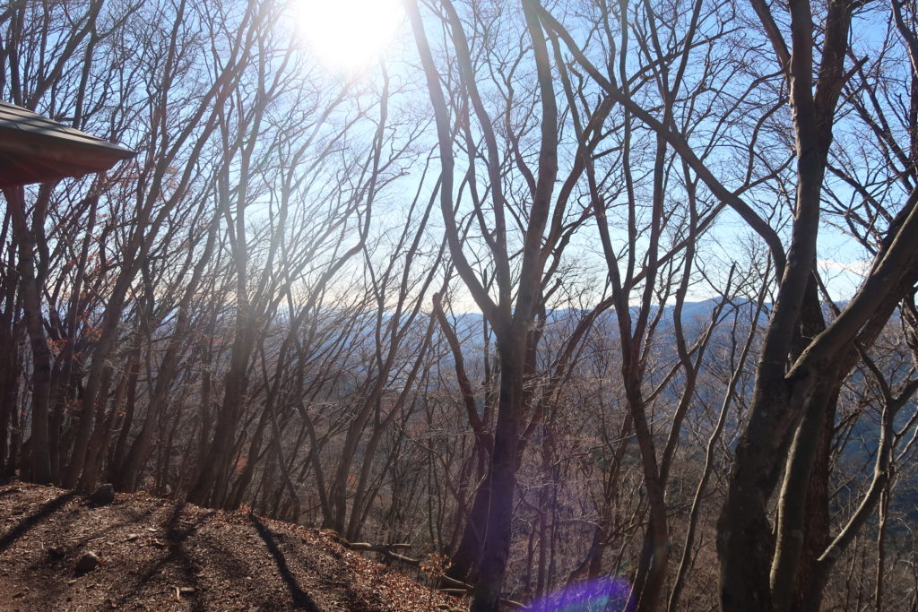 山頂には広いスペースがあり、東屋・ベンチも用意されています。その上、多少木々はあるものの360度の眺望が楽しめます。有名な伊豆ヶ岳のすぐ近くに位置しているので、通過点となることが多く、以外と穴場スポットかもしれません。伊豆ヶ岳から20分、正丸方面から来る際には、ぜひここまで足を延ばしてみてください。