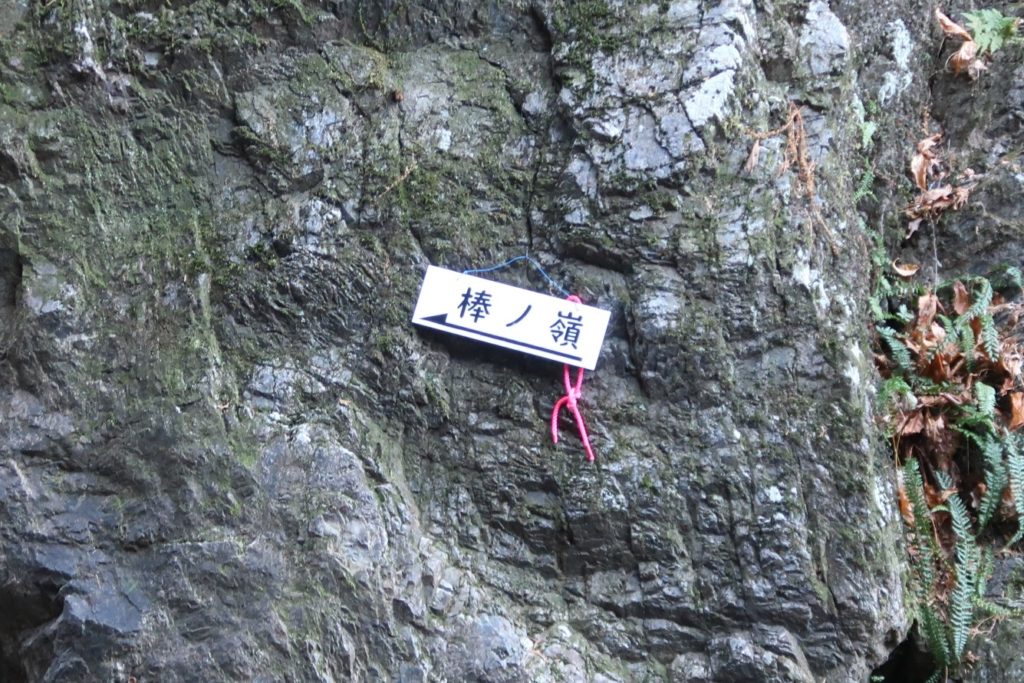 岩に取付けてある「棒ノ嶺」への小さな標識。