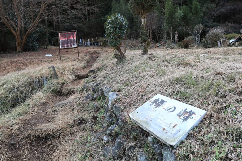 お墓の後ろから廻り込むように歩いてくると、登山道は終了です。