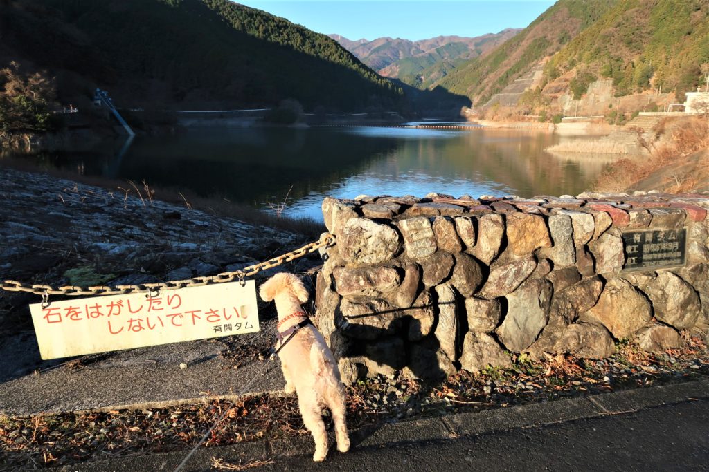 しばらく上り坂を行くと、開けた場所が見えてきました。「有間ダム」のようです。