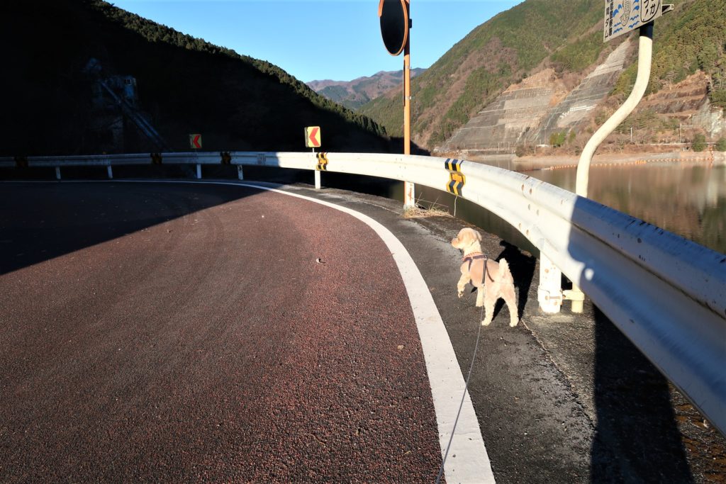 名栗湖の対岸に着いたら、さらに道なりに車道を進みます。