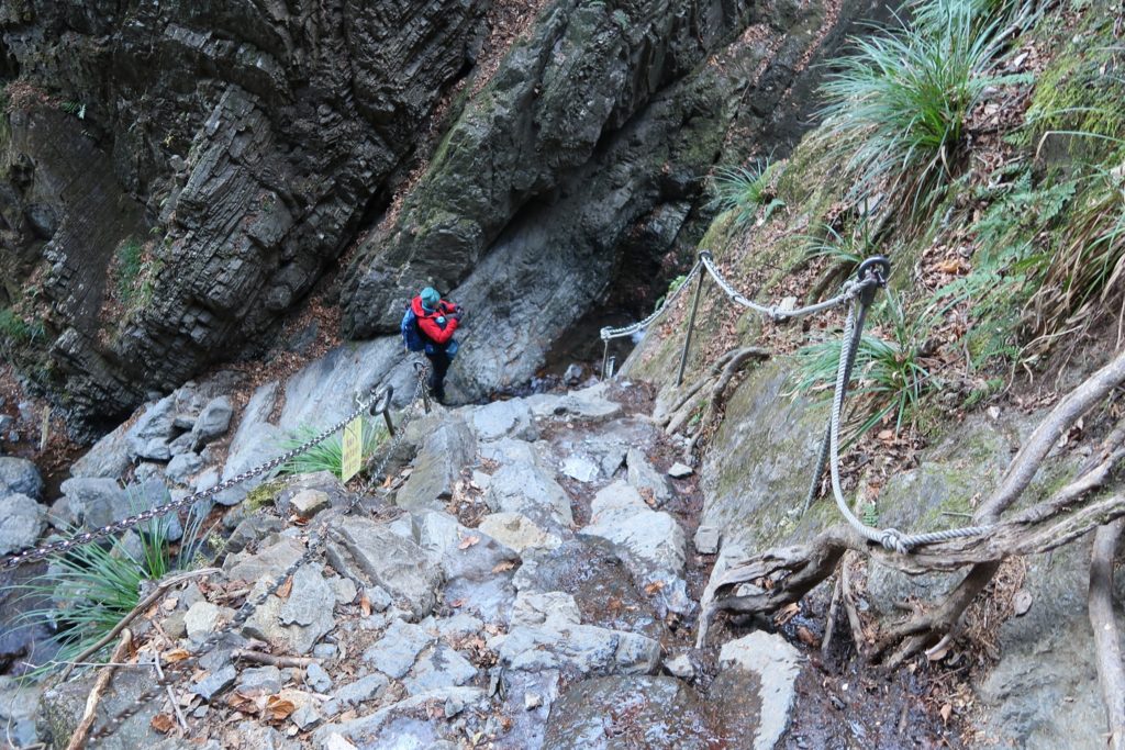 最後は急勾配の岩場となります。長くはありませんが、足場が少なく踏み外したらかなり滑落しそうなところです。