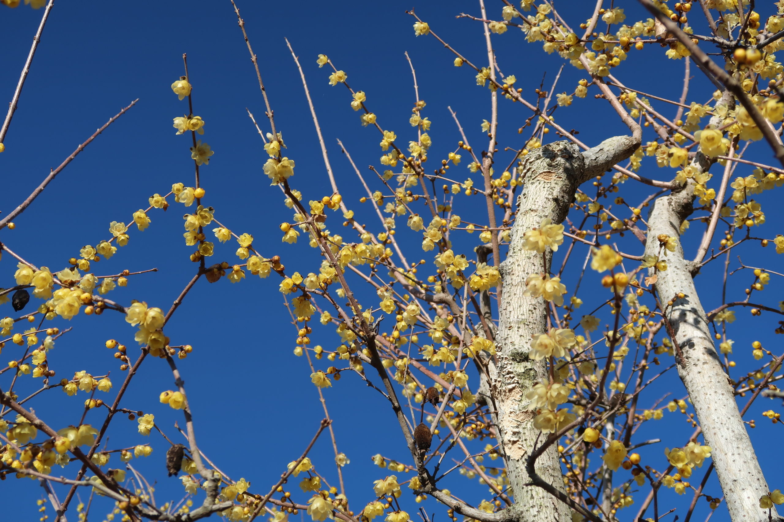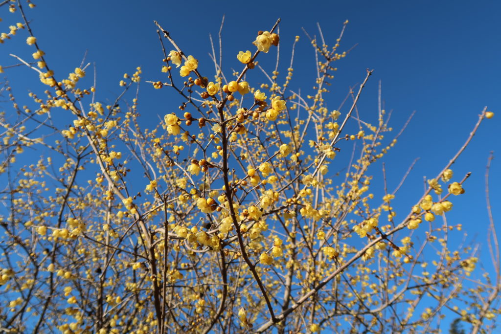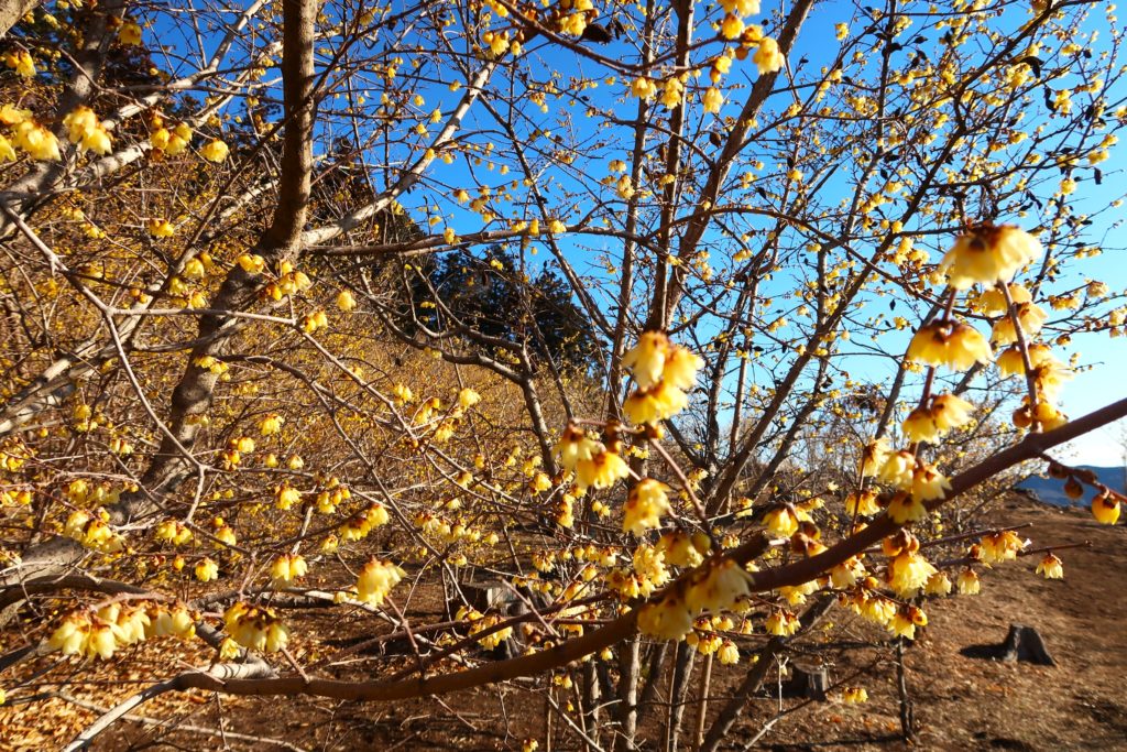 ロウバイは地味な花ですが、3000本もあるとスケールが違います。山頂付近を甘い梅の香りで包み、楽園のような雰囲気を創り出していました。