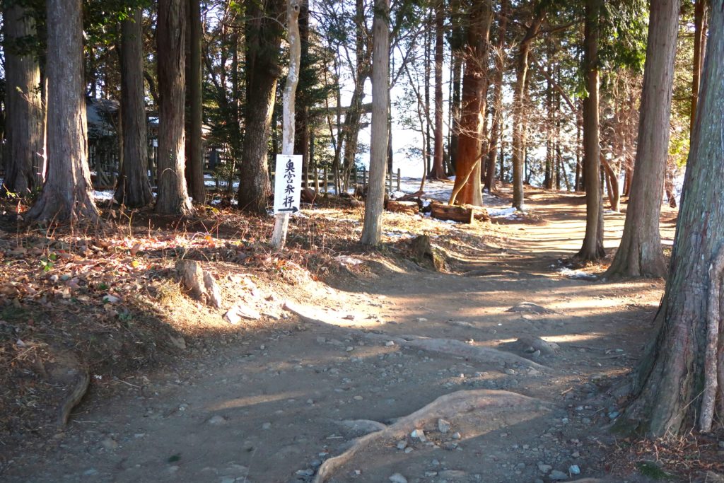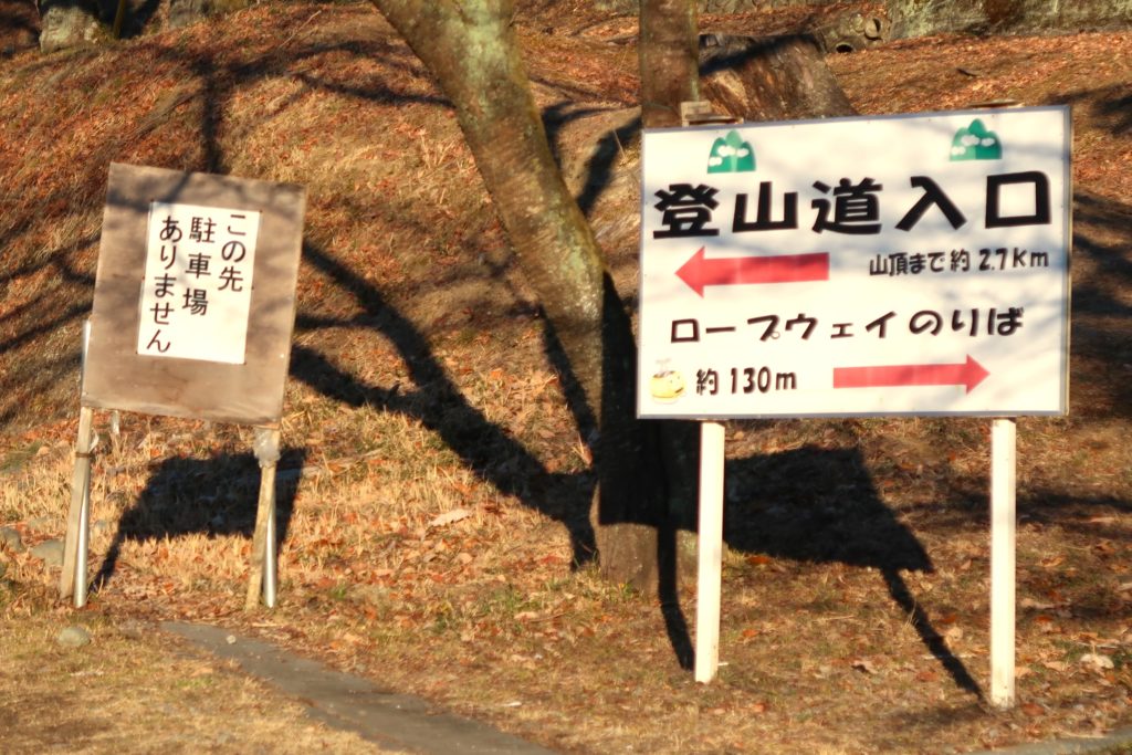 トイレの横あたりに「登山道入口」の案内板がありました。こちらへ進みます。