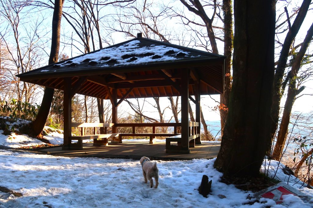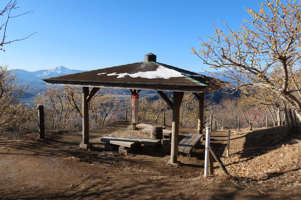 しばらく登ると「東屋」がありました。ちょうど眺めのいい場所に建てられています。