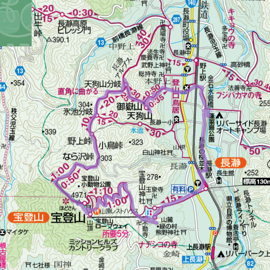 標高497m。ライン下りで有名な秩父市長瀞町(ながとろまち)に位置する山です。