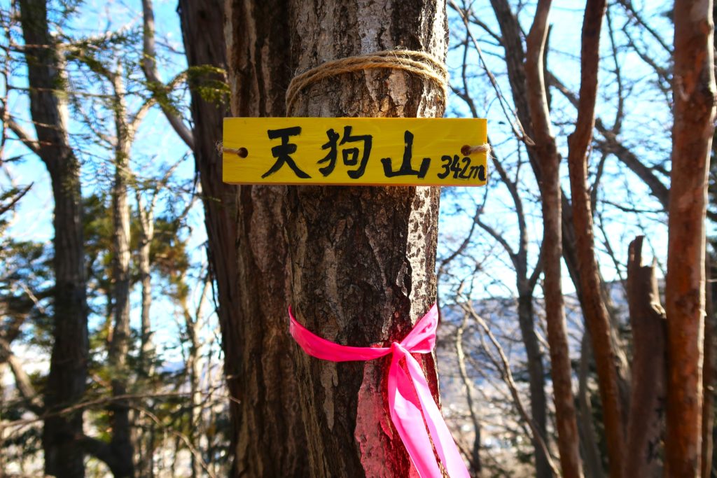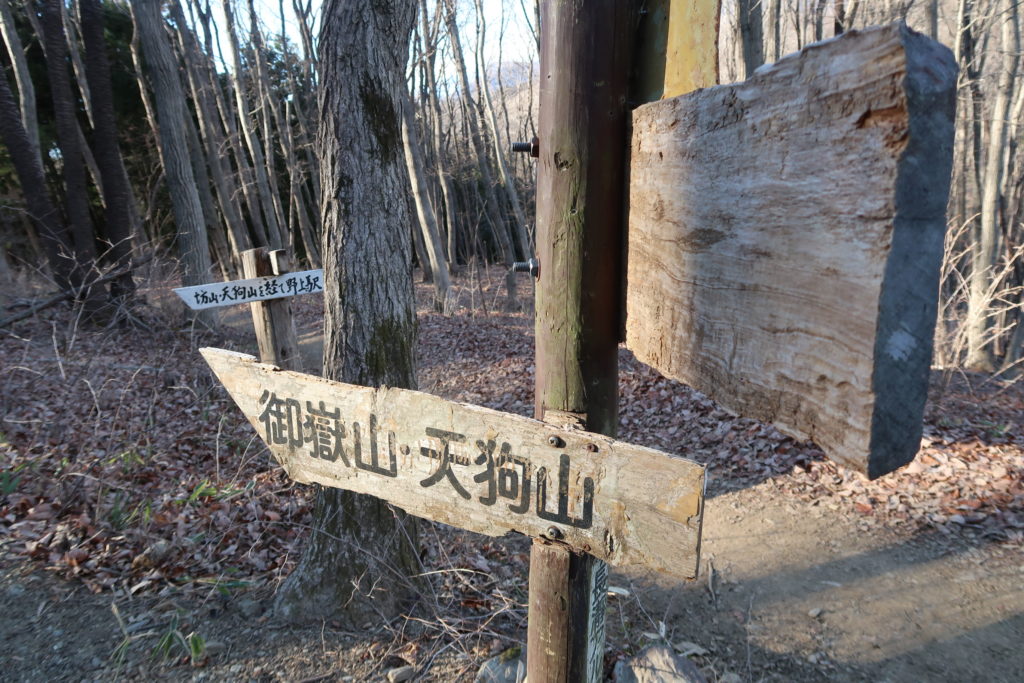 「天狗山」への分岐点がありました。「御嶽山」とも書かれています。
