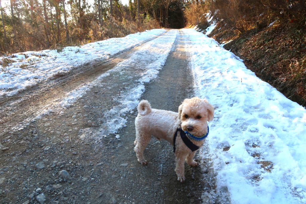 日影になる個所には、まだ雪が残っています。気温の低い早朝は、凍結してガリガリになっているので滑ります。