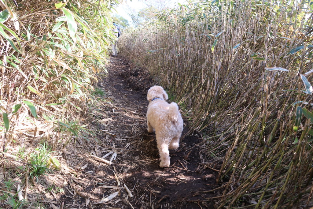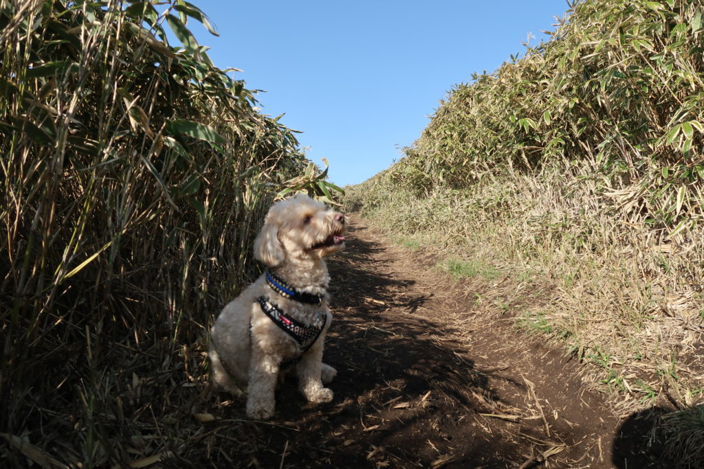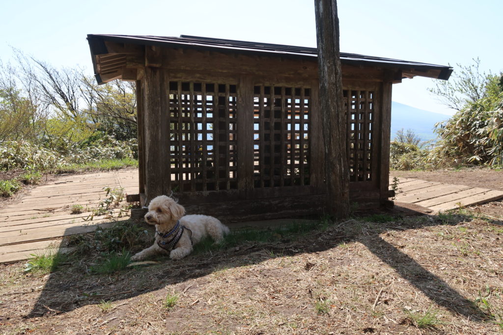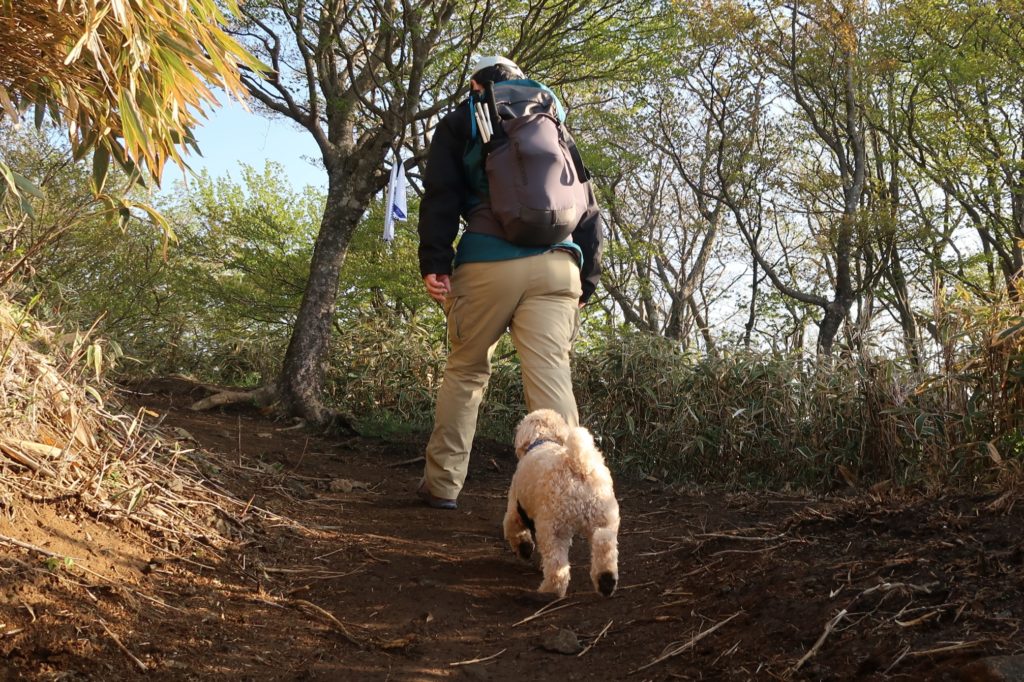 分岐点から山頂までは15分ほどです。天気も良いので気温も上がってきたせいか、暑さに弱いエルモには、少し疲れが見え始めました。