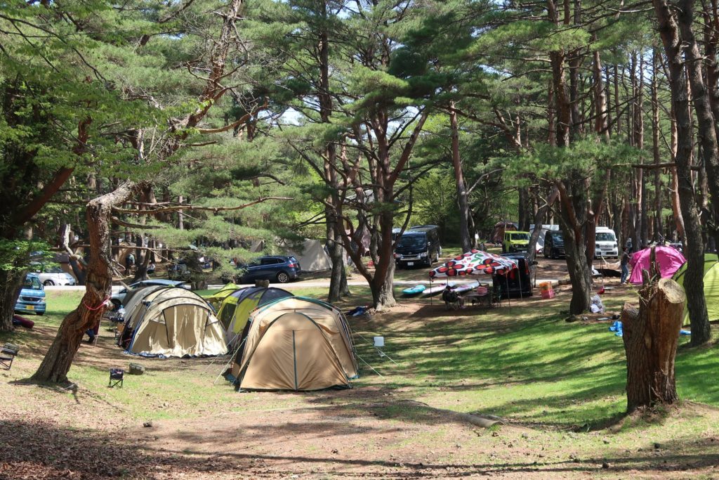 広大な敷地を誇る「本栖湖キャンプ場」。テントエリアは、予約不要のフリーサイトとなっており、良い場所は早い者勝ち。ペットもOKのようで、数多くワンちゃんの姿を見かけました。