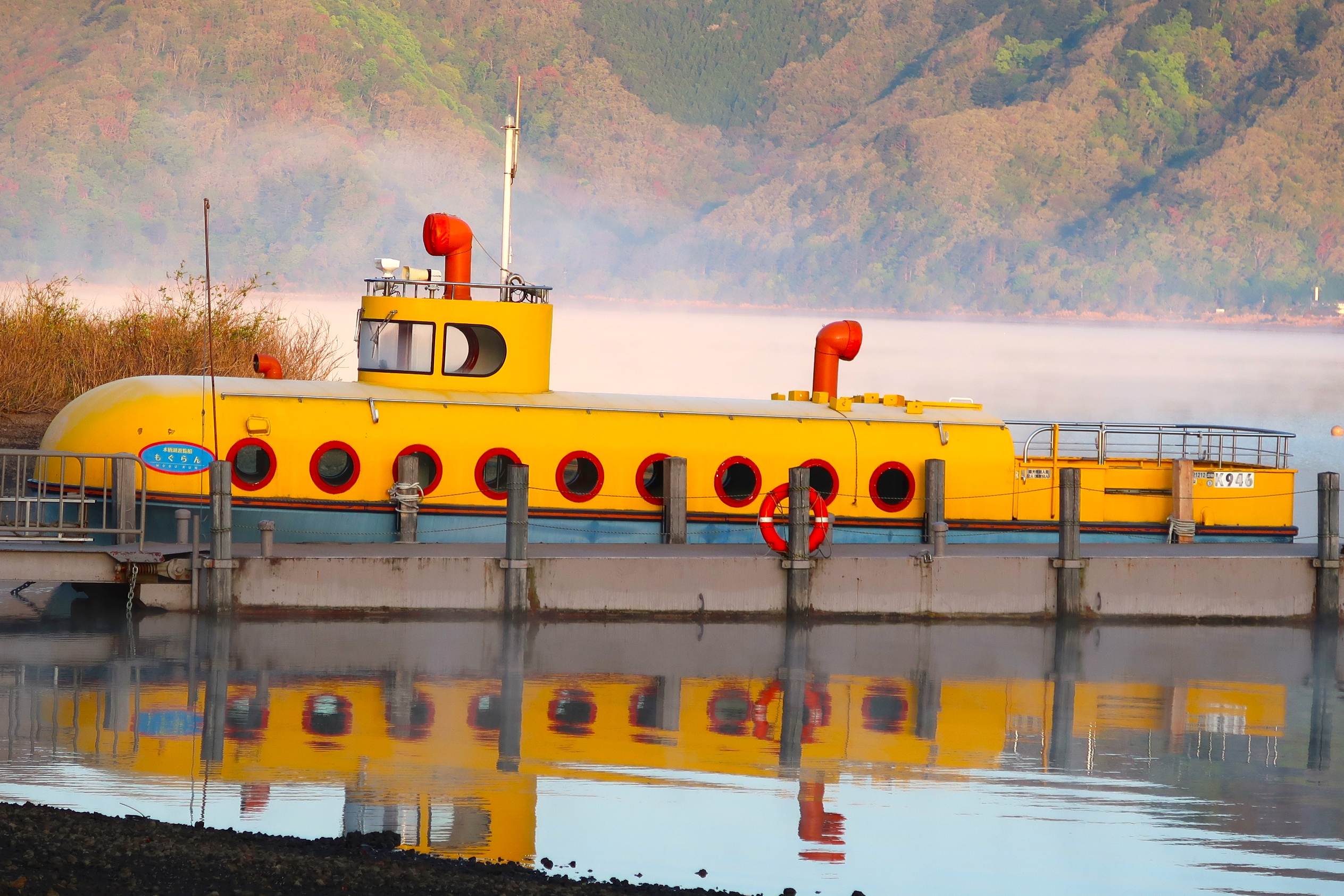 遊覧船「もぐらん」は、潜水艦の形をしているものの、潜らないから「もぐらん」なのだそうです。