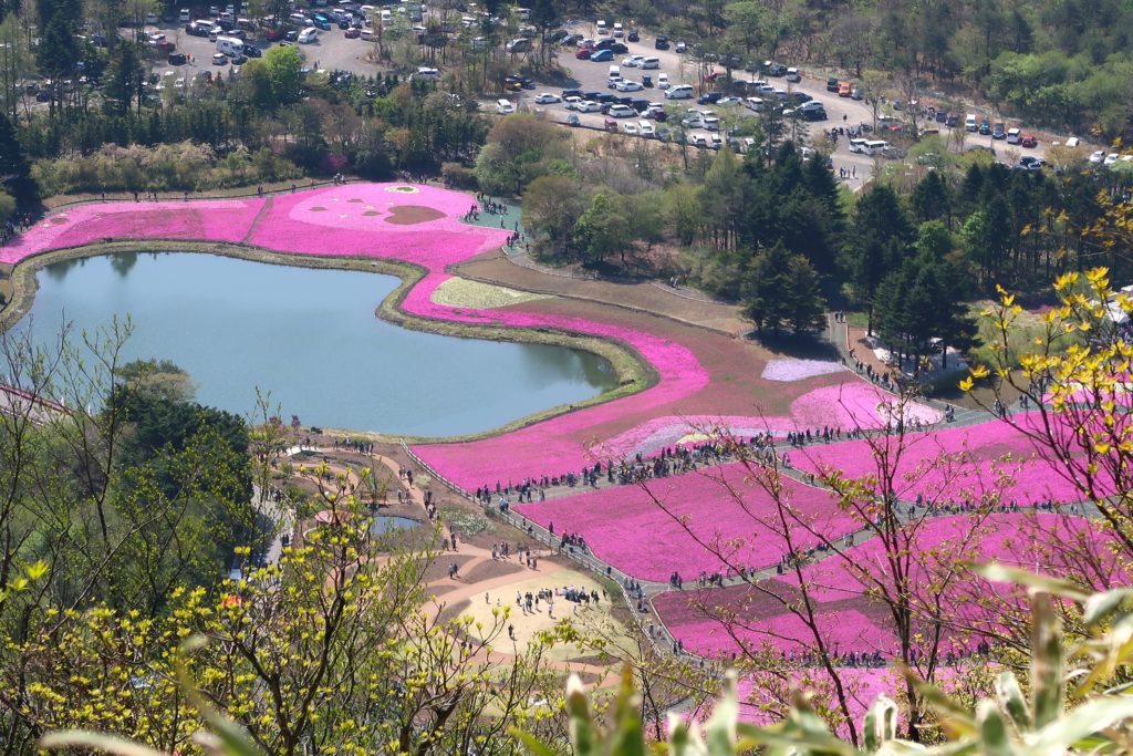 鮮やかなピンクの絨毯を山の上からでもハッキリ確認することができます。