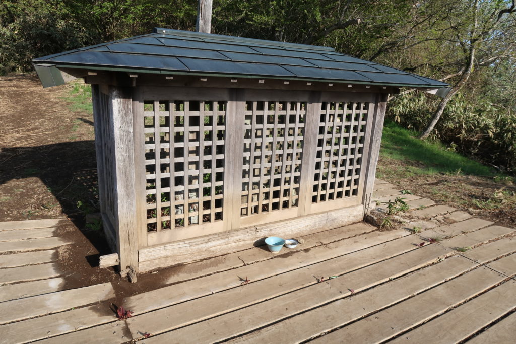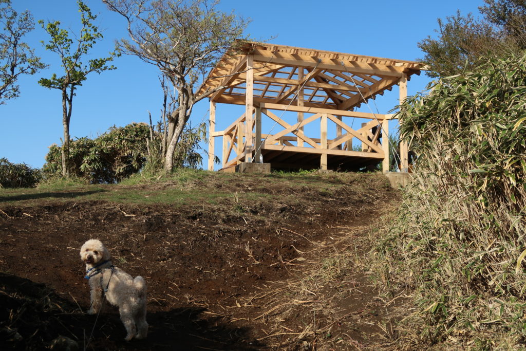 笹の葉に囲まれた登山道を進んで行くと、やがてキレイな東屋が見えてきます。