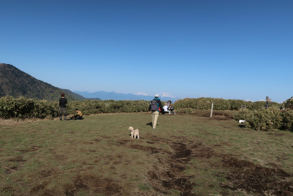 辿り着いた先には、360度のパノラマが開ける広いスペースの山頂があり、南アルプスの山々を望むことができます。