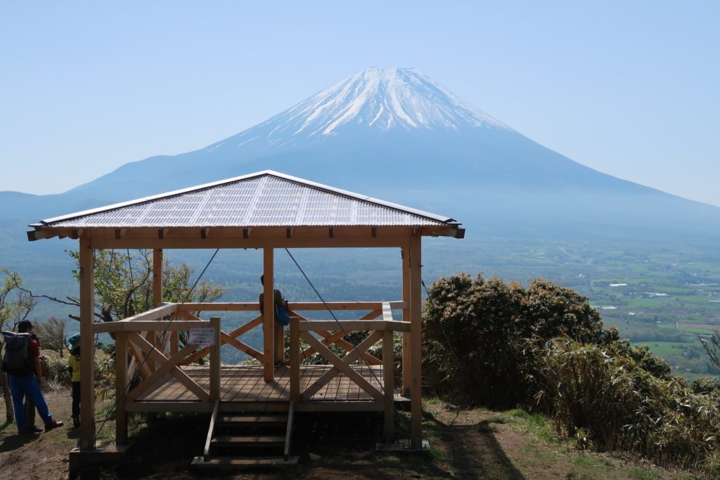 標高900mの駐車場から山頂までは、約2時間。富士山を眺めながらのんびりハイキング。