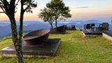 テーブルは3つあります。雨ヶ岳・毛無山が望めるテーブルが特等席のようですね。