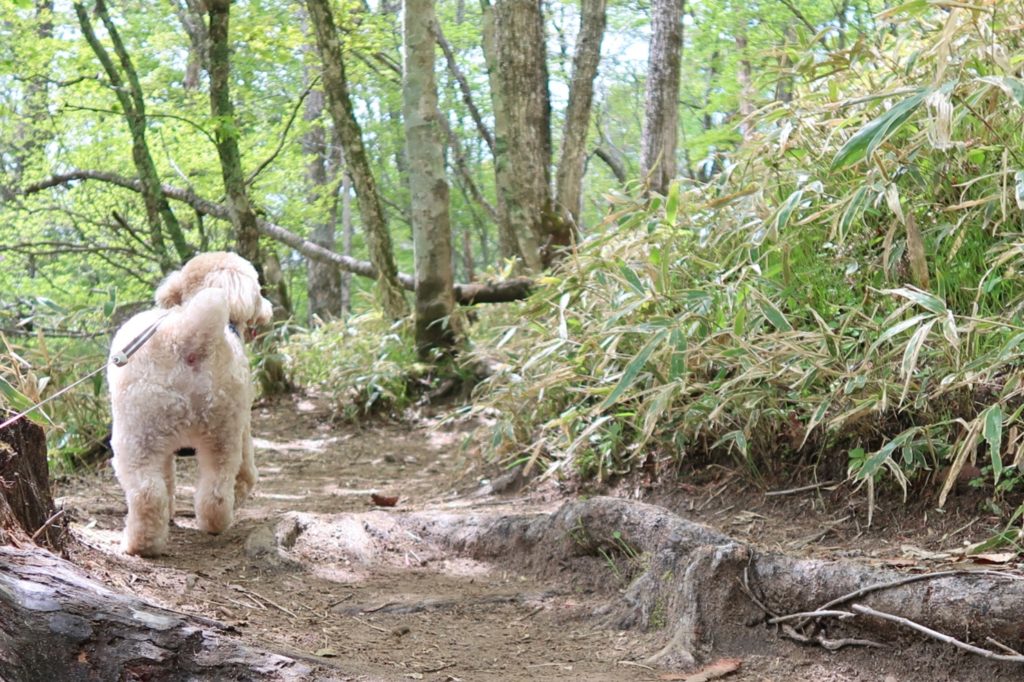 エルモにも少し疲れが見え始めましたが、標高が高くなってきたのと森の中は日影になっているため、それほど暑くはありません。
