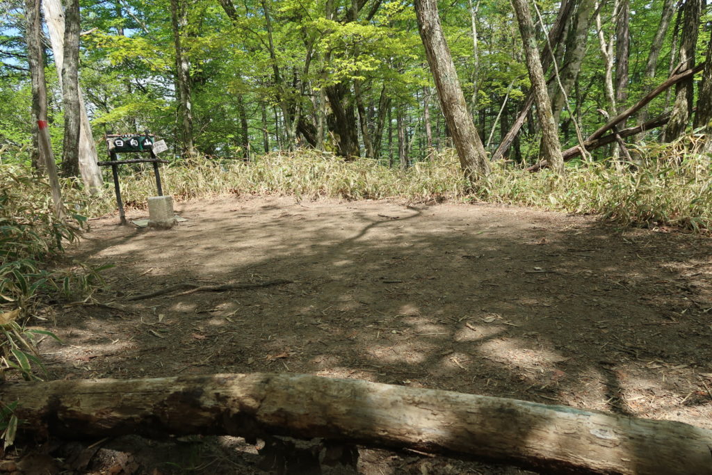 標柱には、「標高1659.9m」と記されています。山頂のスペースは狭く、看板が立っているだけといった寂しい感じ。眺望もないので、写真だけ撮ってビーチに向かう道へ戻ります。