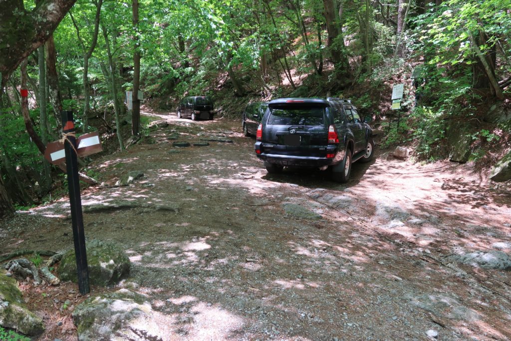 トイレもないので、尾白川渓谷の駐車場が安心なのですが、ここから登れたらすごく楽なので、やはり人気のようです。