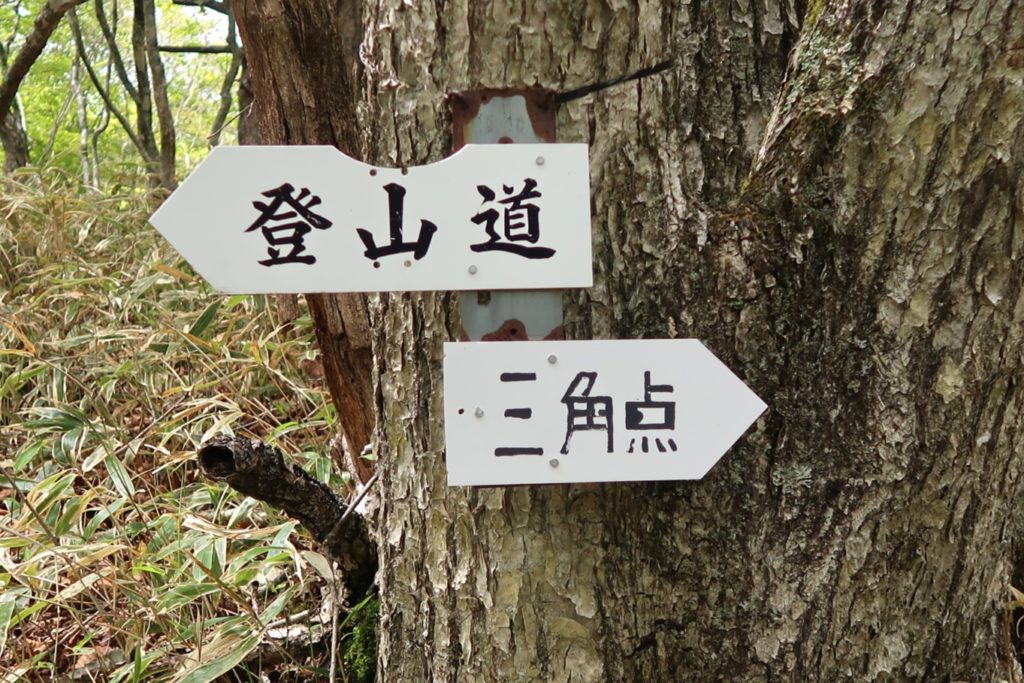 この案内板を「三角点」の方へ進むと山頂、