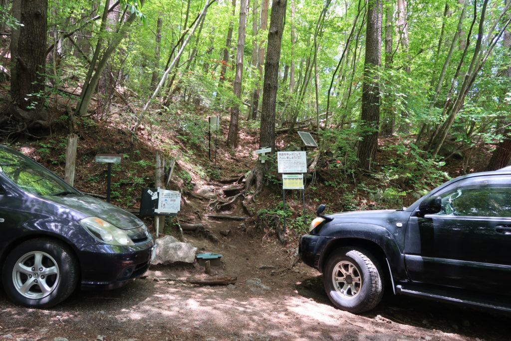 車の間に見える登山道入口へ向かいます。