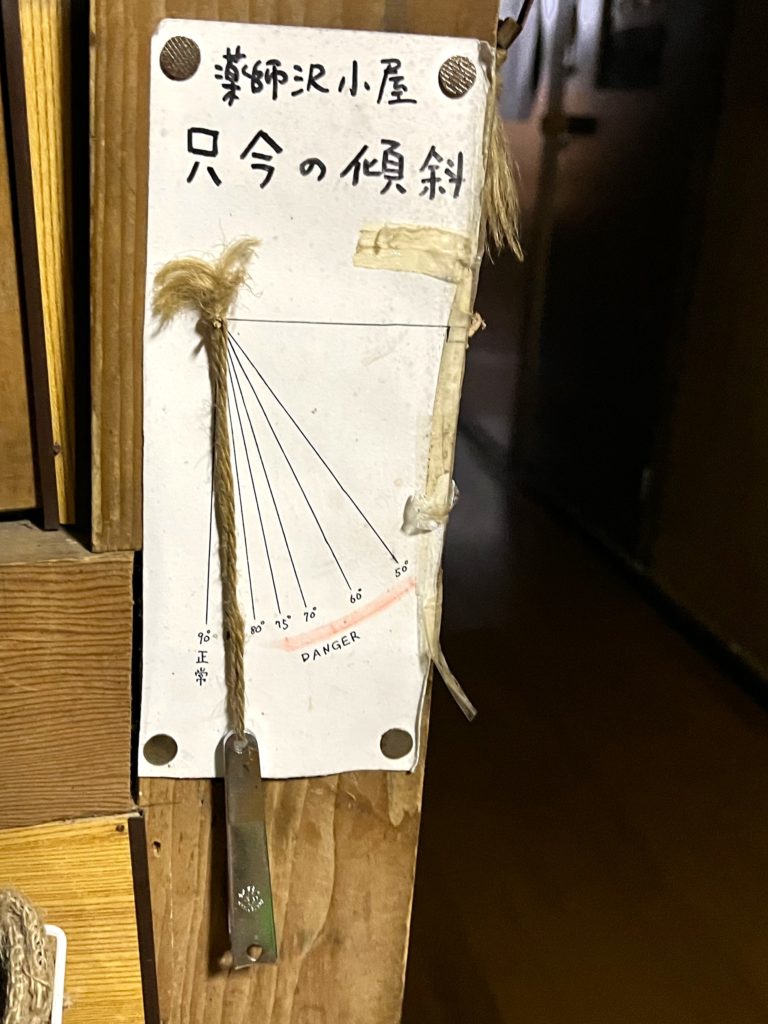 『薬師沢小屋 只今の傾斜』!( ゚Д゚)!