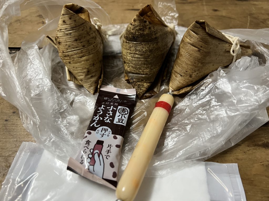 お弁当は、笹の葉で巻かれたちまき3個。とっても美味しかったです♪もち米なので腹持ちもいいし、何よりゴミが少なくて助かります。