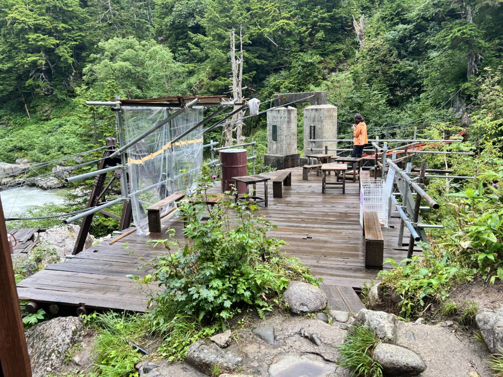 テラス席の反対側に『薬師沢出合吊橋』の入口があります。