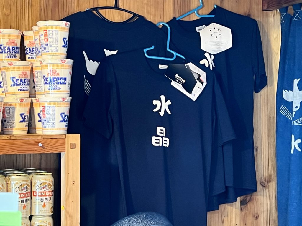 Tシャツ・手ぬぐいなどのお土産も個性的なものがそろっています。欲しかったけど、今回は悪天候のためピークハントできなかったので断念。次回、登れたら記念に買おうと思っています。