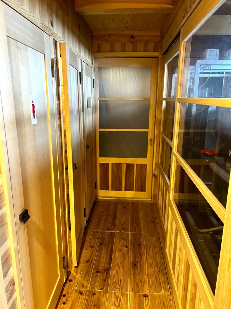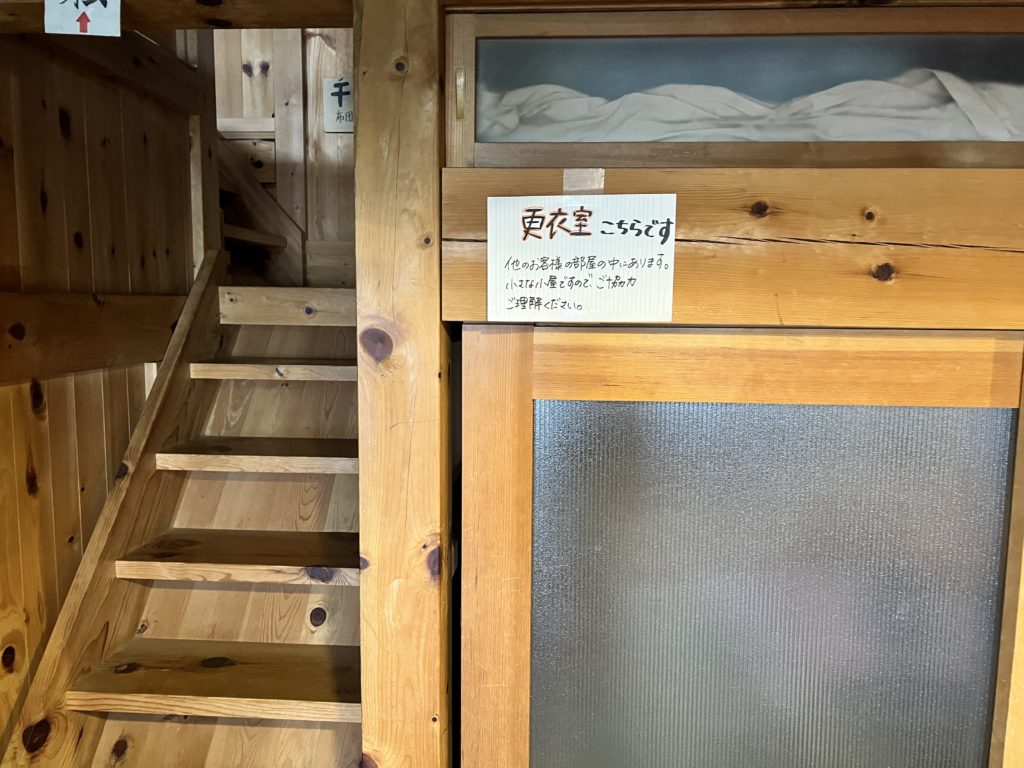 1階の客室の一部を仕切って更衣室になっています。限られたスペースの中、ありがたい設備はキチンと整っています。