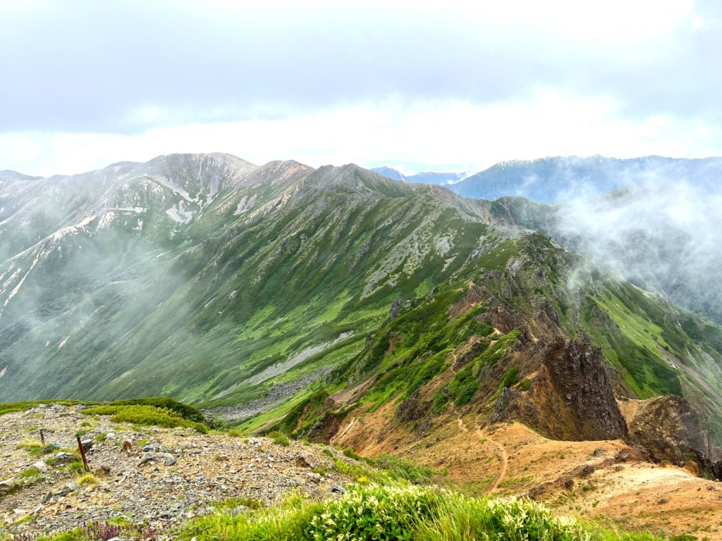 この辺りは、北アルプス屈指の強風地帯で、登山中暴風雨に見舞われることも日常です。強風が危険なレベルのためキャンプ場はありません。