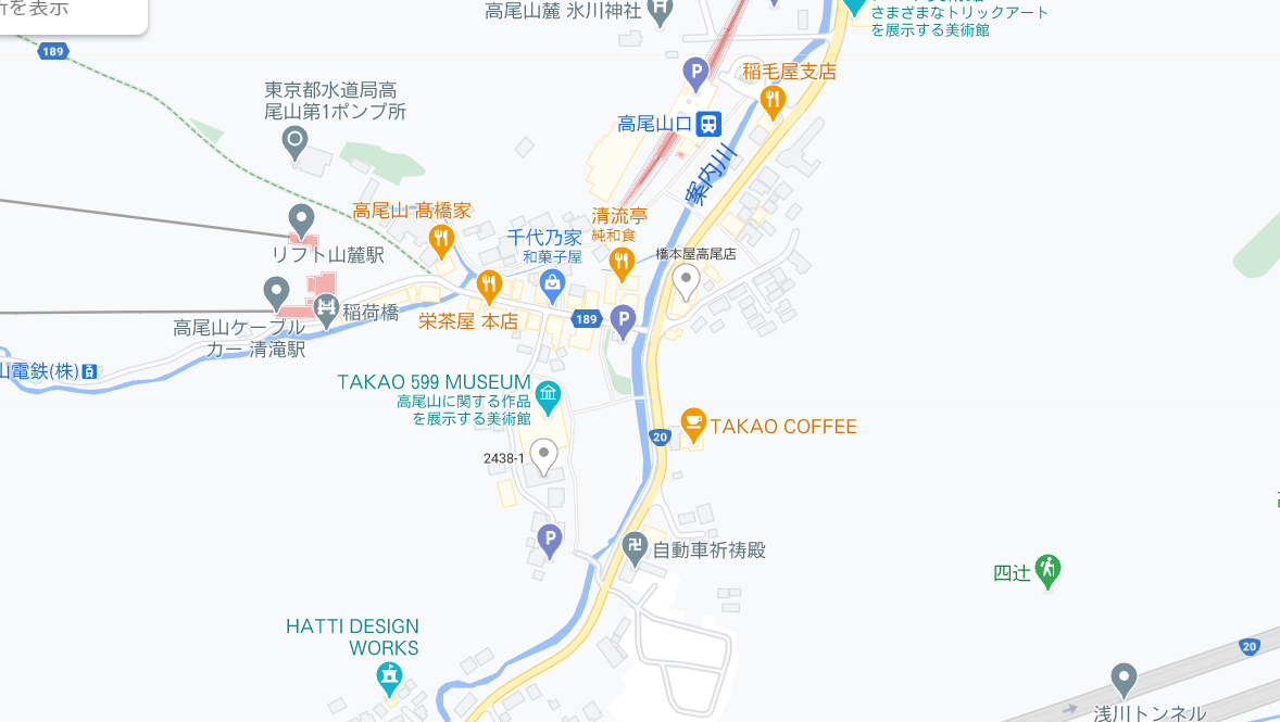 電車でアクセスする場合は、高尾山口駅を出たら、20号線を渡りましょう。