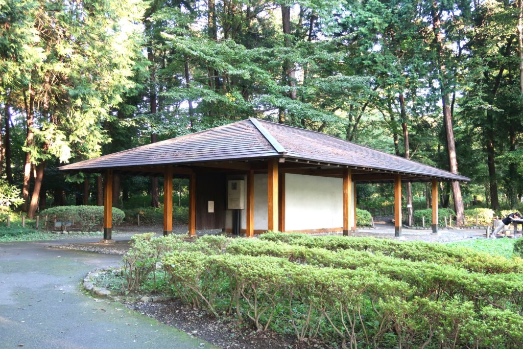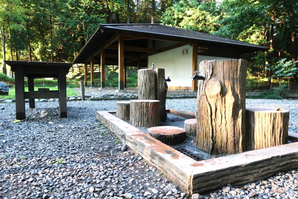 トイレは「釜の淵公園」を利用します。駐車場から2~3分下ったところの立派な東屋風の建物です。