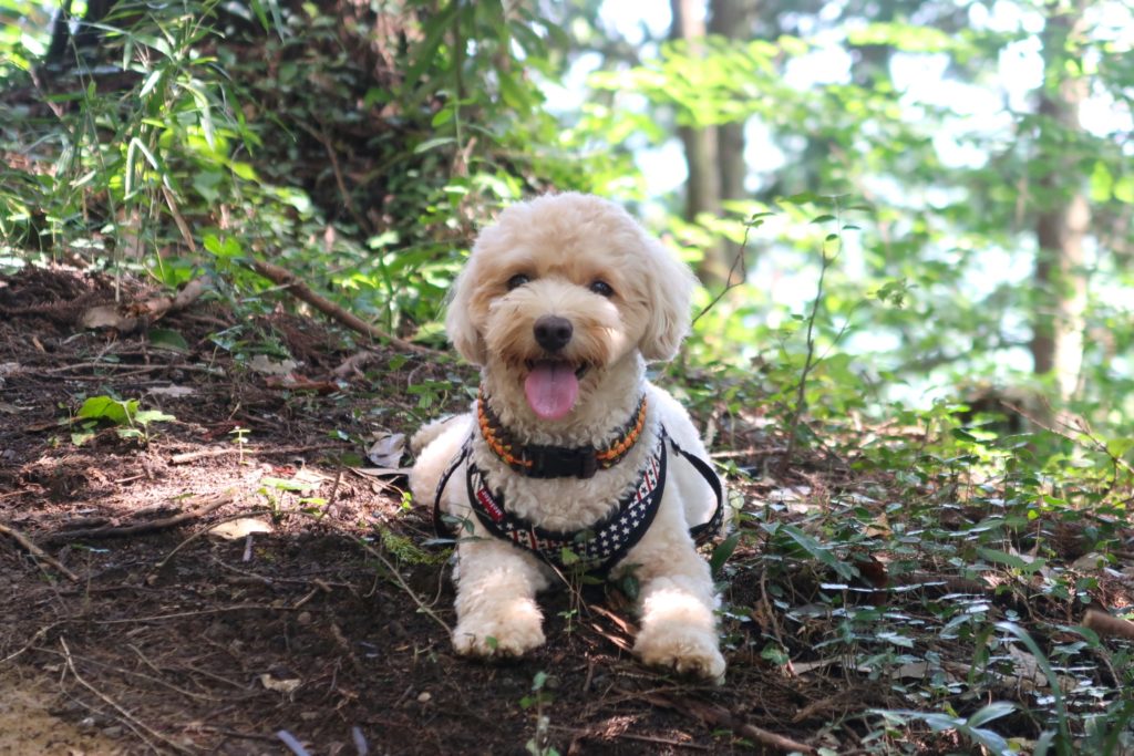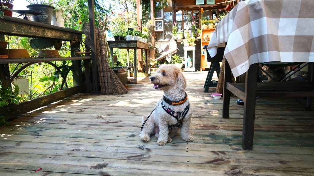 ありがたいお言葉をいただきましたが、飼い主は汗だくだし、エルモは散々藪漕ぎをした後で汚れているに違いないので、テラス席に座らせてもらうことにしました。