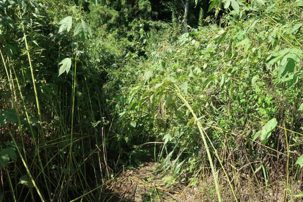 あきらめたくなるような登山道(T_T)草木を掻き分けながら進みます。
