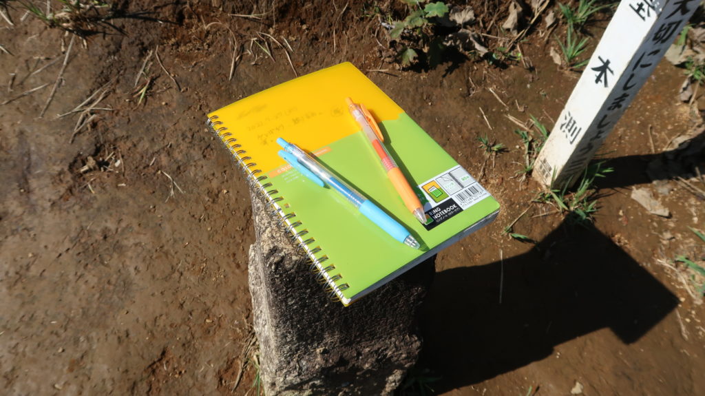 トトロポストの中には、ノートとペンが入っていて、誰でも自由に書き込めるようになっています。