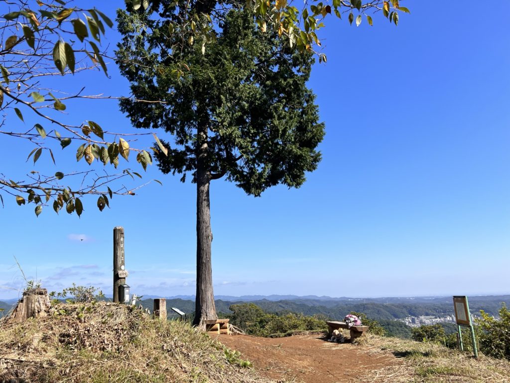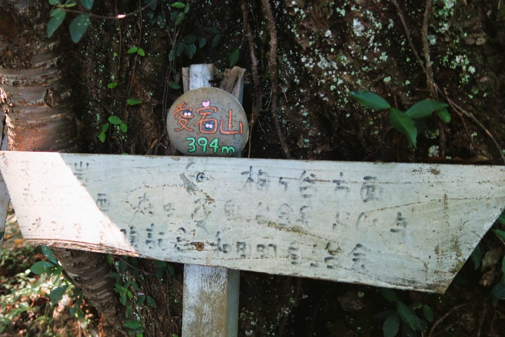 標高394m。ハイキングコースから少し外れて往復30分、ピストンで行く必要があります。途中、迷いそうな分岐点を経て山頂に到着します。
