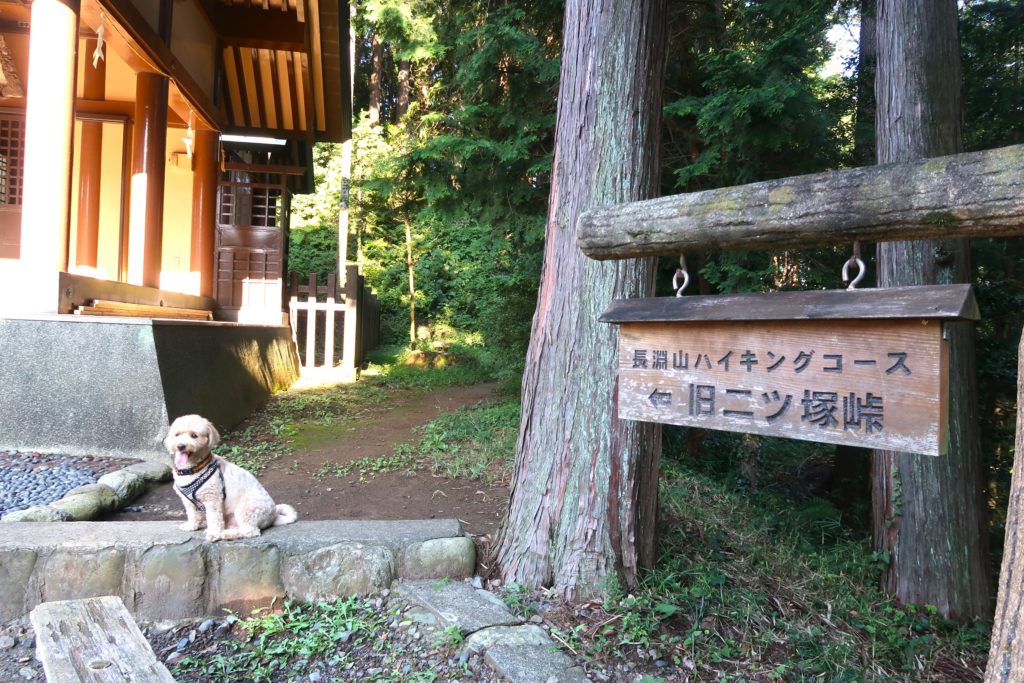 拝殿で山行の安全祈願を済ませたら、建物の横を通って「長淵山ハイキングコース」へ入りましょう。