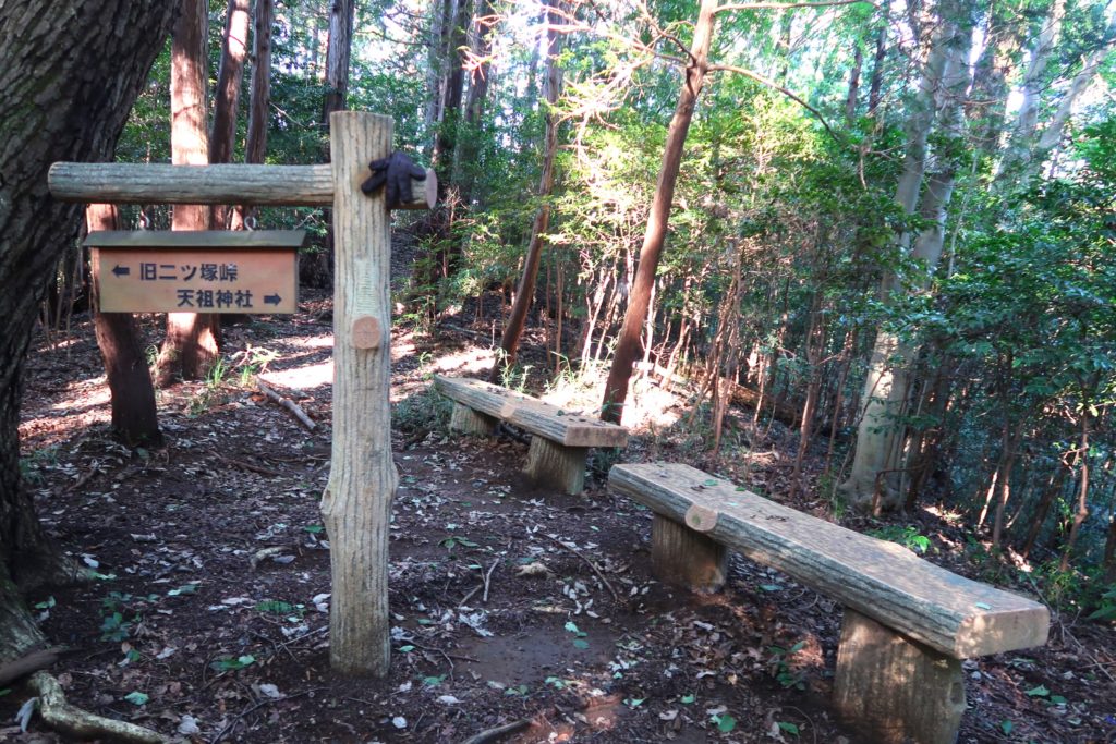 「二ツ塚峠」に到着です。ここまで4.3km 1時間30分。