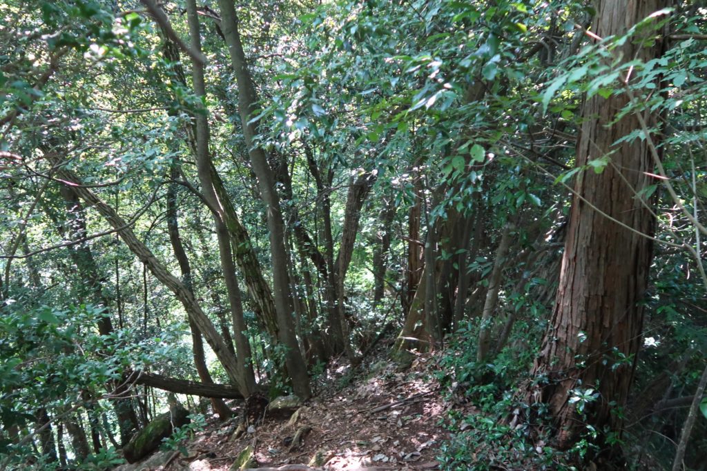 「天狗岩」までは、200m。片道10分くらいの距離なのですが、急坂を下り、登り返した先にたどり着ける場所にありました。しかも、行く人が少ないのか、登山道も荒れ気味です。