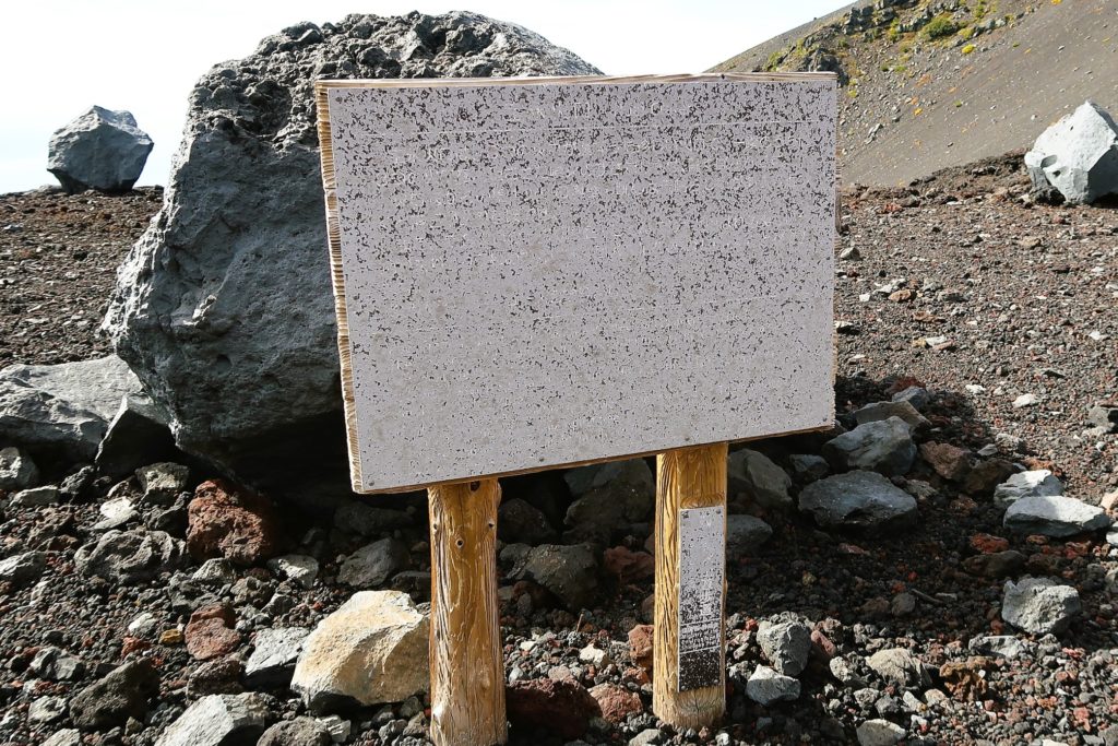 案内板や説明板は、この厳しい自然環境を物語るかのように、表面が白く濁っています。