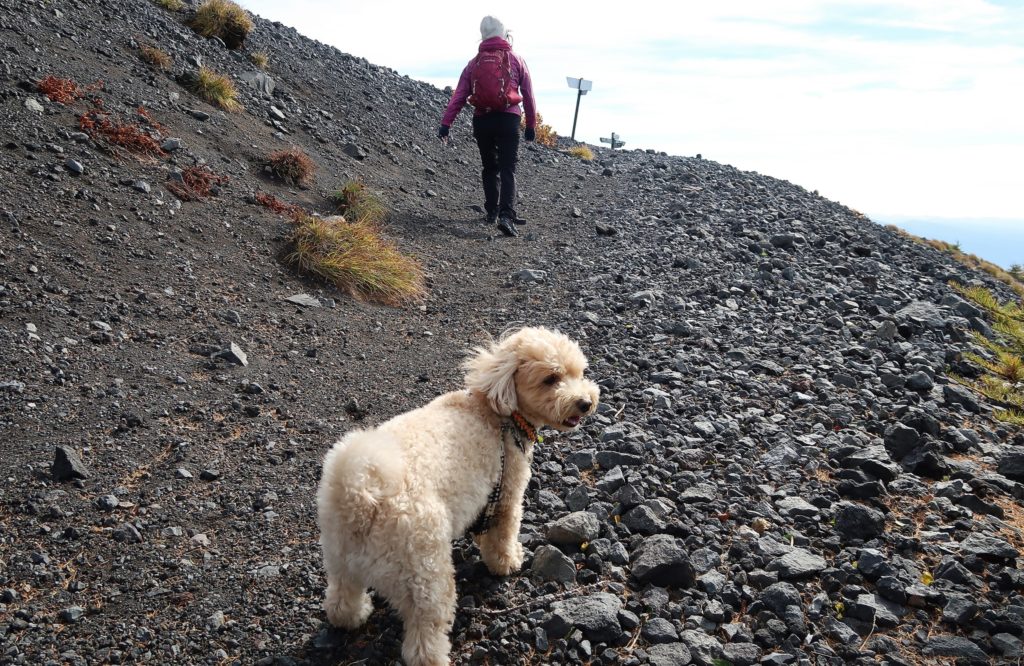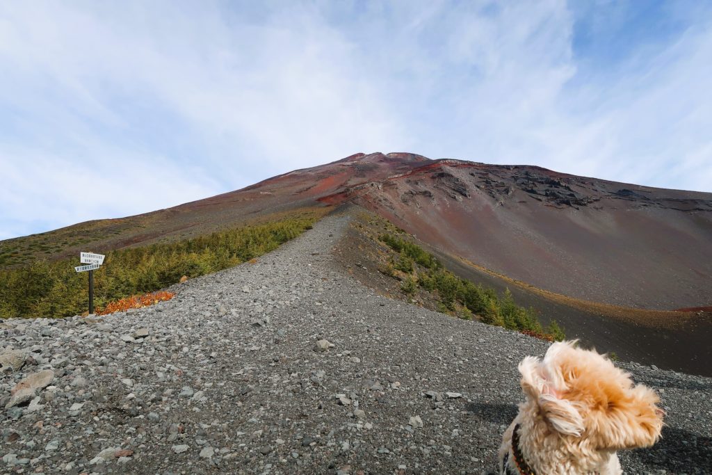 正面には不気味なほどスッキリとした姿を見せる「宝永山」が待ち構えています。