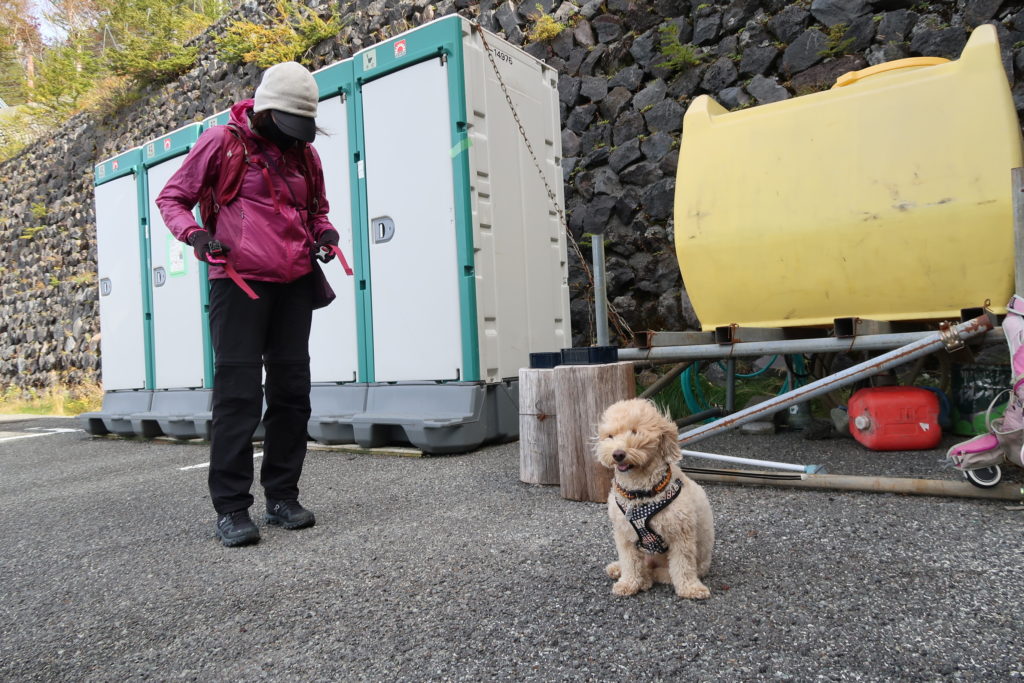 駐車場まで戻って、来る時にチラッと見かけた「簡易トイレ」を目指すことにします。
