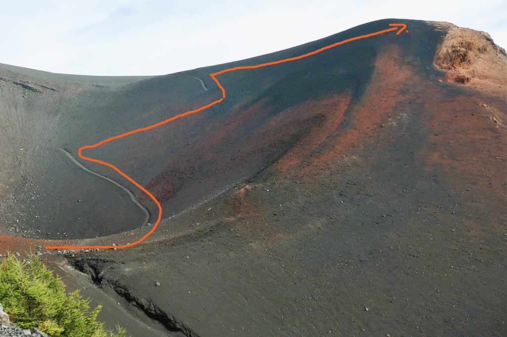 火口の中に「ℤ」の文字のような登山ルートが造られており、ダイナミックな景観が楽しめることが人気の理由のひとつとなっています。