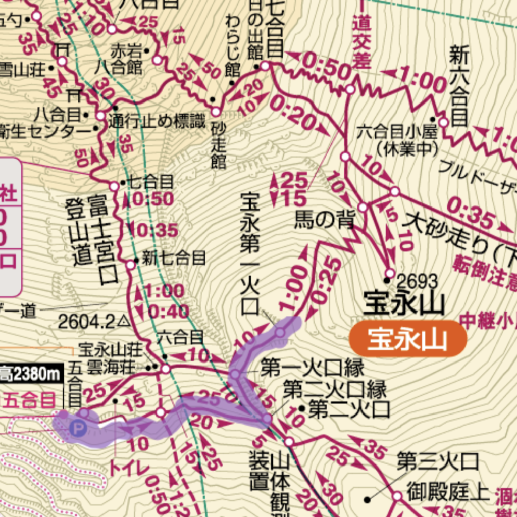 標高2,693m。宝永4年の宝永大噴火で誕生した富士山最大の側火山です。