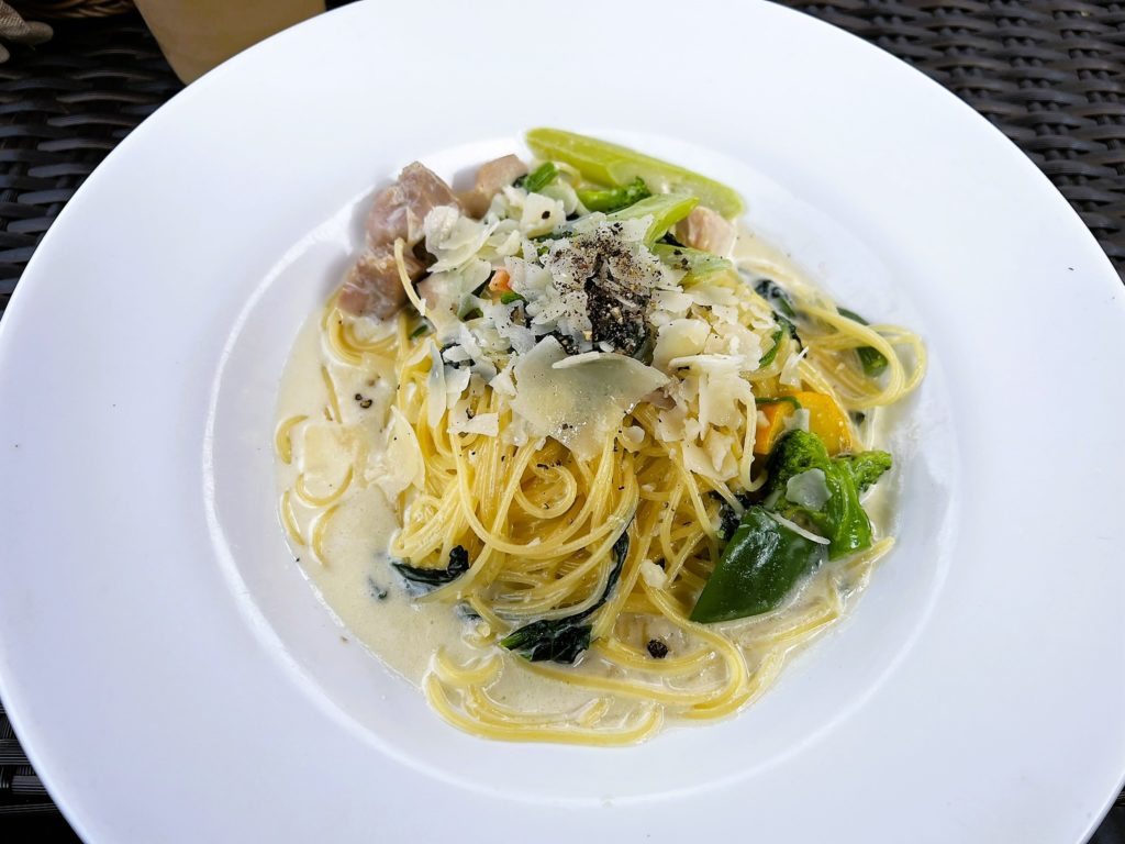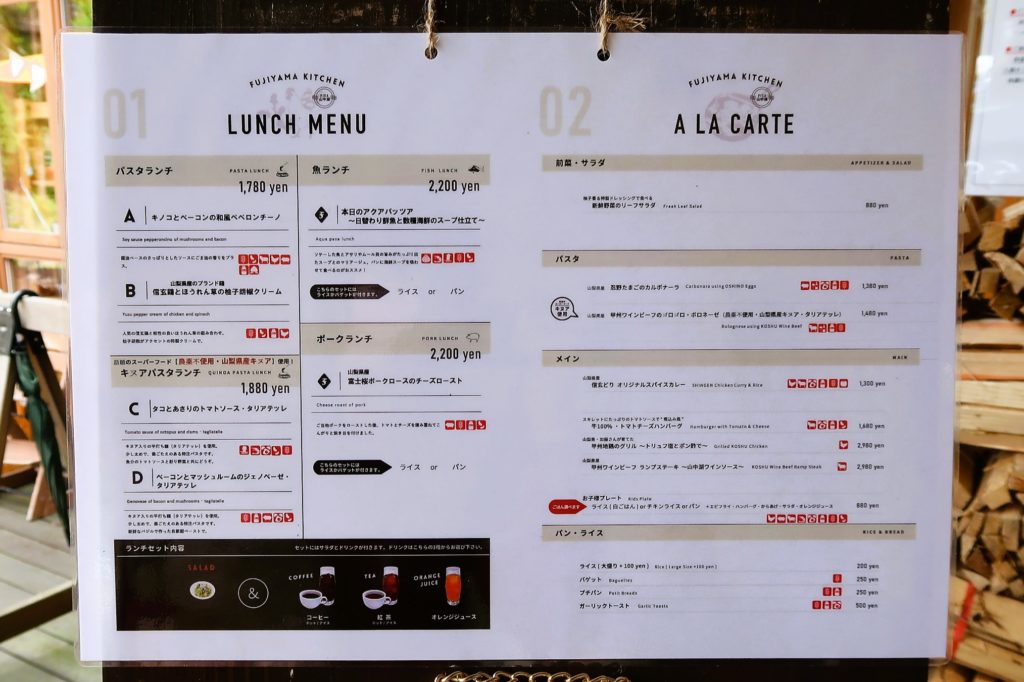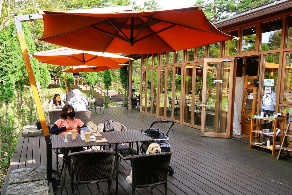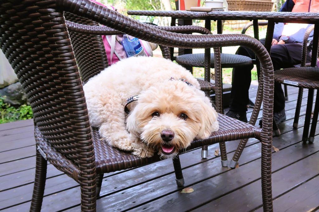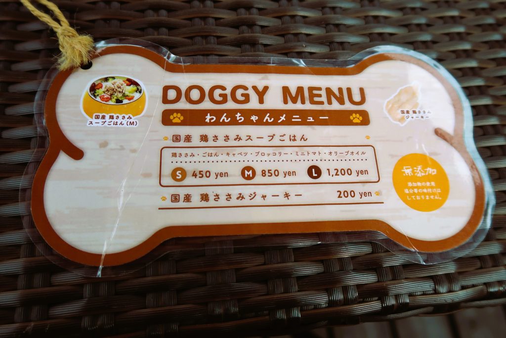 コテージ型の宿泊施設ですが、併設のレストラン・カフェは(テラス席のみ)ワンちゃん同伴で一般利用が可能です。ワンちゃん用の食事メニューもありました。