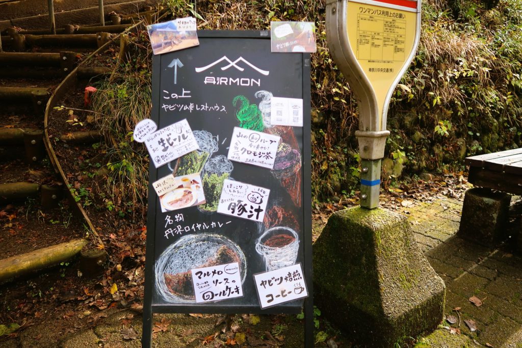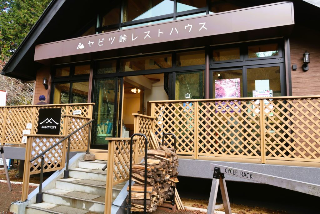 バス停の上にあるのは、2021年3月にオープンした「ヤビツ峠レストハウス」。