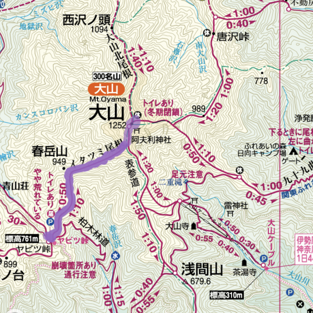 標高761mのヤビツ峠から1時間20分。